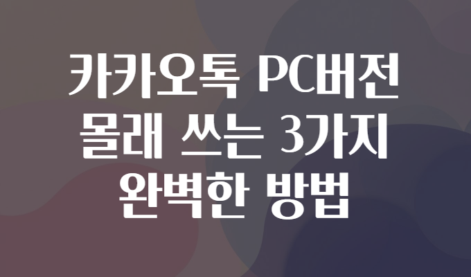 ์๋ ํ์ธ์ ์ฌ๋ฌ๋ถ! ํน์ ์นด์นด์คํก PC๋ฒ์ ์ฌ์ฉํ๋ฉด์ ์ฃผ๋ณ์ ๋คํค์ง ์๊ณ ‘๋ชฐ๋’ ์ฐ๊ณ ์ถ์ ์ ์์ผ์ ๊ฐ์? ๐ ์ง์ฅ ์์ฌ๊ฐ ๋ด ์ฑํ ์ํ์ ๊ฐ์ํ ๊น ๋ด, ํน์ ์ง์์ ์กฐ์ฉํ ๋ฉ์์ง๋ฅผ ์ฃผ๊ณ ๋ฐ๊ณ ์ถ์๋ฐ ๋๊ตฐ๊ฐ๊ฐ ๋ชจ๋ํฐ๋ฅผ ์ฟ๋ณผ๊น ๋ด ๊ฑฑ์ ๋ ๋… ๊ทธ๋ฐ ์๊ฐ์ ๊ผญ ํ์ํ ๊ฟํ๋ค์ด ์์ต๋๋ค! ์ค๋์ ์นด์นด์คํก PC๋ฒ์ ์ ์๋ฒฝํ๊ฒ ๋ชฐ๋ ์ฐ๋ ๋ฒ์ 3๊ฐ์ง ๋ฐฉ๋ฒ์ผ๋ก ์๋ ค๋๋ฆด๊ฒ์.
