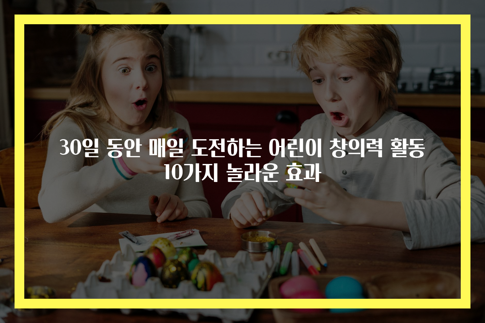 νΉν, 30μΌ λμ λ§€μΌ λμ νλ μ°½μλ ₯ νλμ μ΄λ¦°μ΄μ μ§μ€λ ₯κ³Ό μΈλ΄μ¬μ κΈ°λ₯΄λ λ° ν° λμμ΄ λ©λλ€. λ°λ³΅μ μΈ νλμ ν΅ν΄ μμ΄λ€μ μμ κ°μ μ»κ³ , μ€ν¨λ₯Ό κ²½ννλ©° νμ΅νλ λ²μ λ°°μΈ μ μμ΅λλ€. μλ₯Ό λ€μ΄, κ·Έλ¦Ό 그리기λ μμ μ곑과 κ°μ μ°½μμ μΈ νλμ μμ΄λ€μκ² μμ μ ννν κΈ°νλ₯Ό μ 곡νκ³ , λμκ° νμΈμ μ견μ μμ©νλ λ° λμμ μ€λλ€. μ΄λ₯Ό ν΅ν΄ μ¬νμ μνΈμμ©μ μ§λ κ°μ λμ£ .